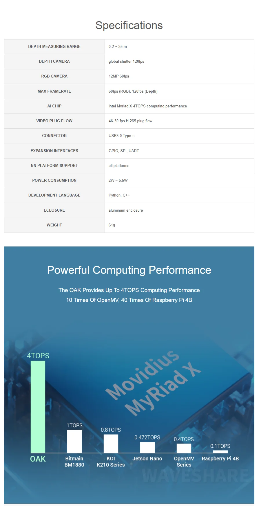 این مدل دارای توان پردازشی 4 TOPS است که از آن حدود 1.4 TOPS برای اجرای مدلهای عصبی (Neural Networks) اختصاص داده شده است.