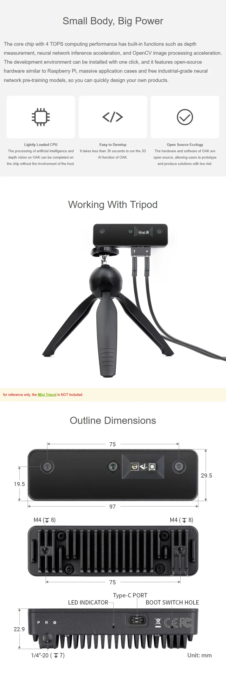 لطفاً توجه داشته باشید که این یک وبکم نیست. این یک دوربین هوش مصنوعی 12 مگاپیکسلی فضایی (Spatial AI) و بینایی کامپیوتری (CV) برای رباتها است. این دوربین به طور خاص برای مهندسانی طراحی شده است که رباتها و سیستمهای اتوماسیون رباتیک میسازند.این محصول فقط برای افرادی است که به این دوربینهای تخصصی و چند منظوره برای درک محیط رباتیک (robotic-perception) نیاز دارند.