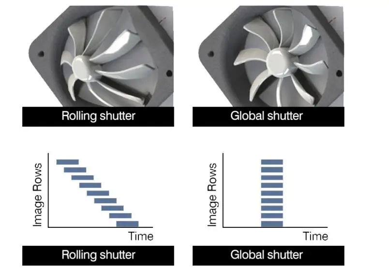 برخلاف دوربینهای Rolling Shutter، در این مدل تمام پیکسلها همزمان نوردهی میشوند.